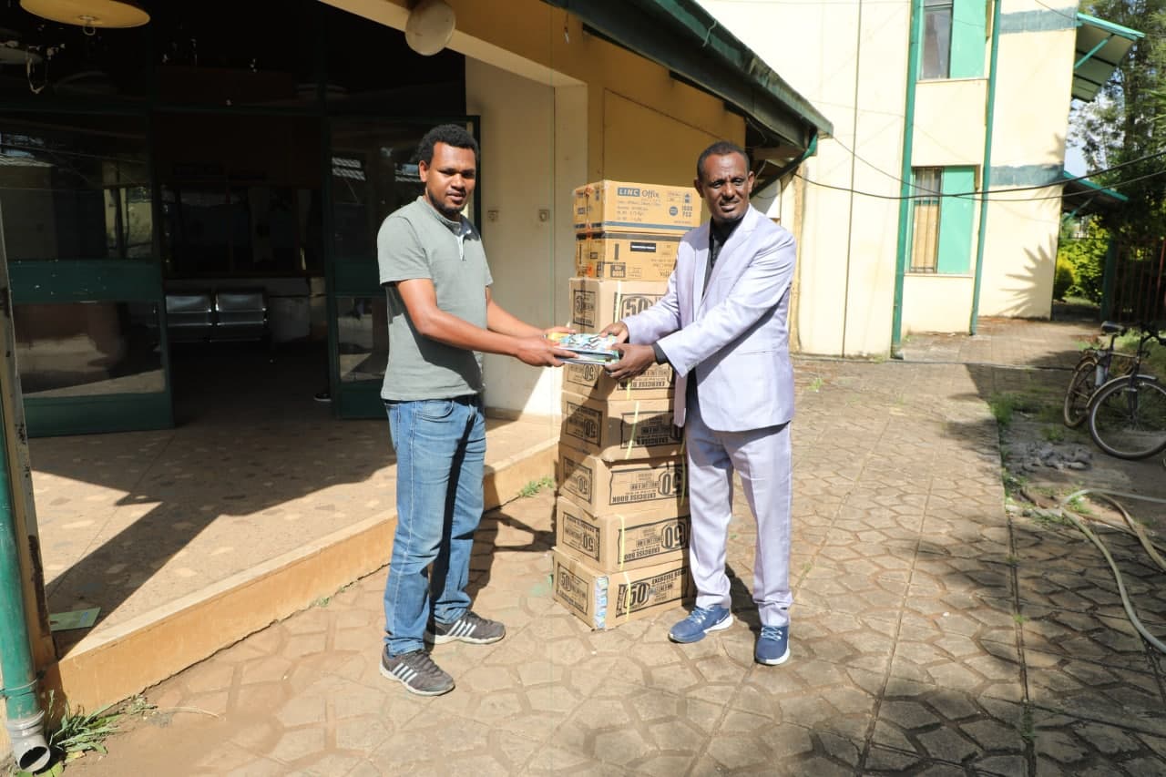 ቢሮው ለተፈናቃይ ተማሪዎች መማሪያ የሚሆን አንድ መቶ ደርዘን ደብተርና አርባ ፓኮ እስክብሪቶ ለአማራ ክልል ትምህርት ቢሮ አስረክቧል፡፡